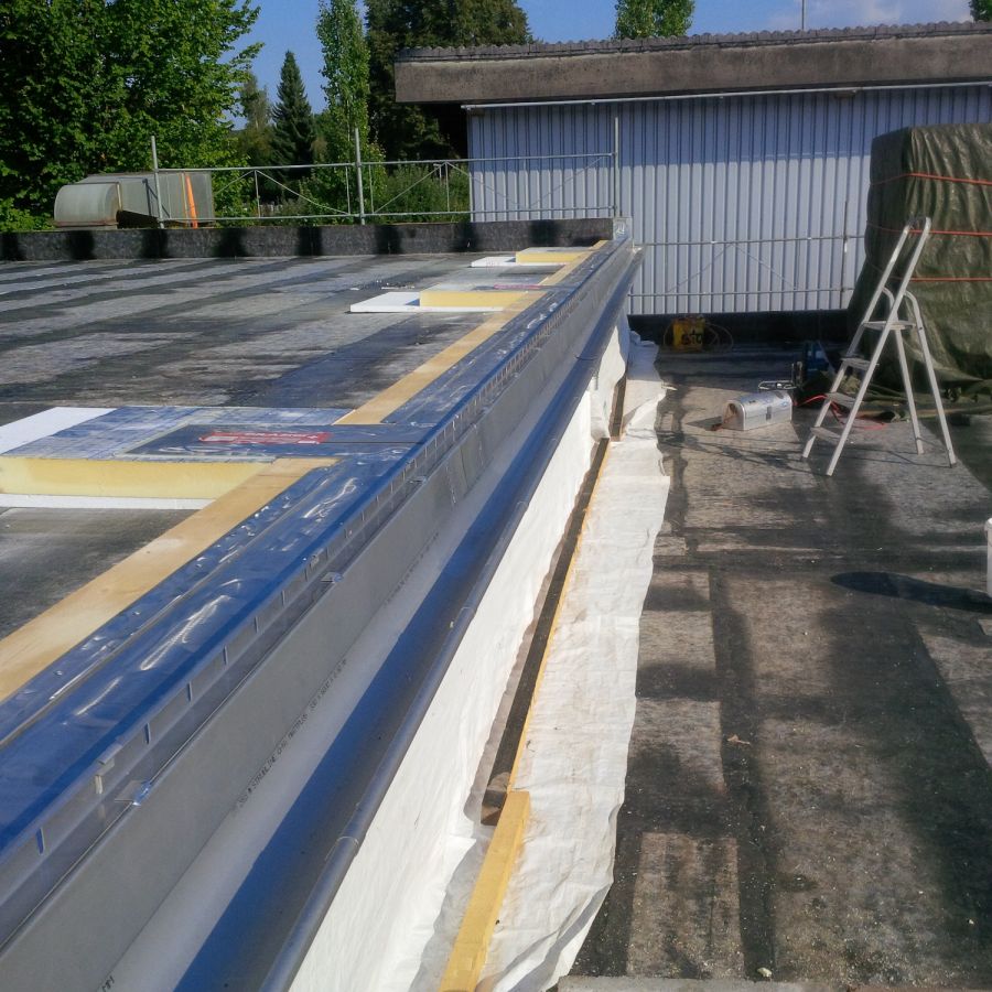 Anschlüsse an Tür- oder Fensterschwellen, schwer zugängliche Bauwerksteile oder Fassadenanschlüssen sind klassische Schwachpunkte beim Flachdach. Für diese Spezialdetails wird heute Flüssigkunststoff verwendet. Wir verarbeiten diverse Materialien der Firma Triflex, wo wir speziell auf diese Produkte geschult wurden.